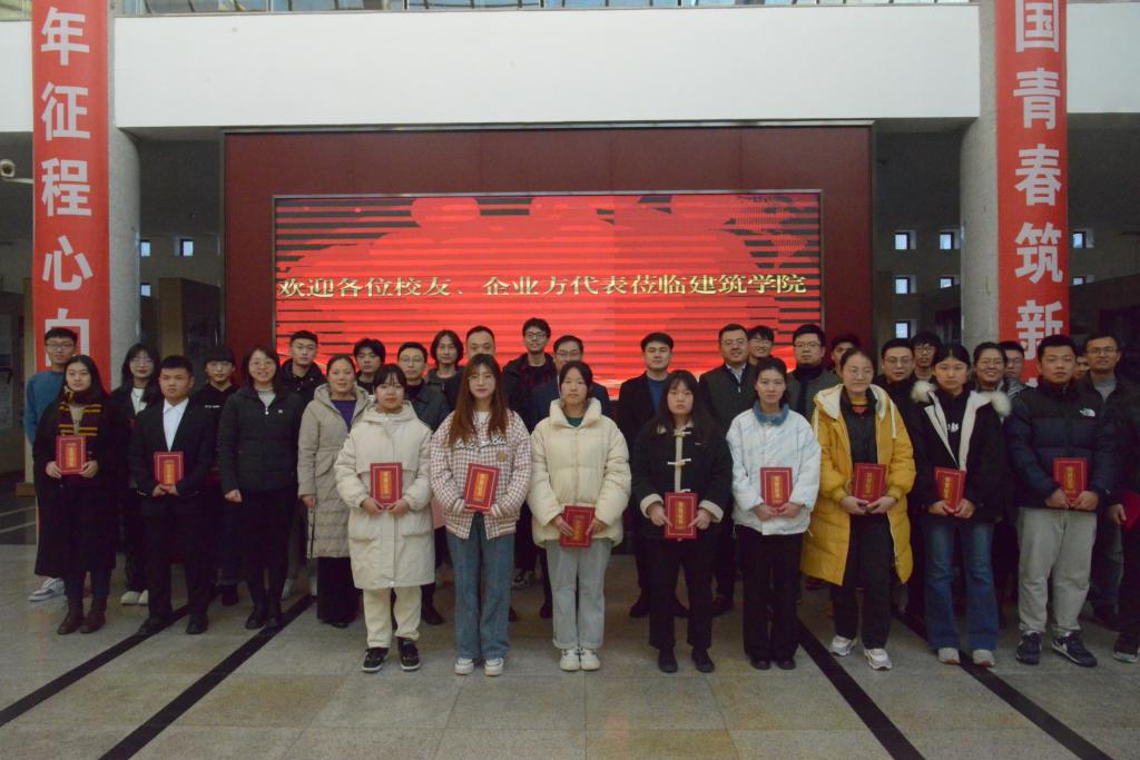 建筑系主任张巍、烟台迈梵实商贸有限公司创始人耿明辉、烟台瑞冠建筑装饰有限公司创始人于傅龙、山东印象规划建筑设计有限公司创始人于雷、山东帝阁门业有限公司总经理陈振汉、烟台帝阁建材有限公司总经理阎昌盛应邀出席。