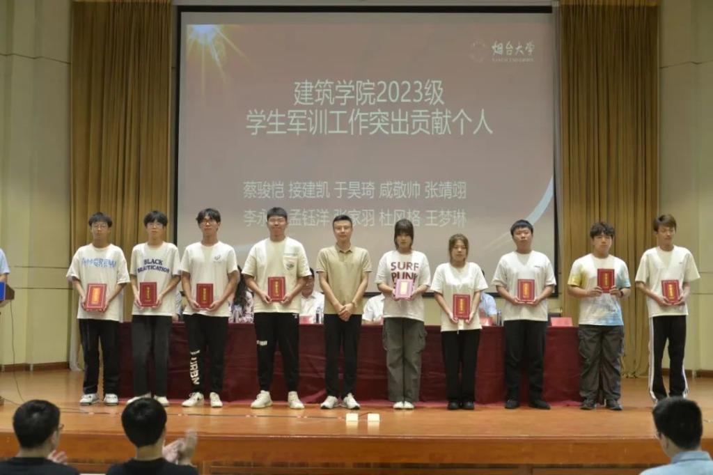 2023级学生军训表彰大会中,学院领导和老师对军训内务优胜宿舍、军训标兵、军训优秀学员、新生优秀导助、军训工作突出贡献个人颁奖。
