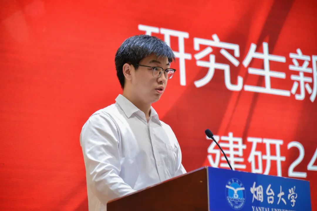 研究生新生代表郑昕、本科生新生代表陈睿泽表达了对学院的敬仰之情,承诺将努力学习,传承并发扬学院的创新精神,并以实际行动践行“海纳百川,敢为人先”的烟大精神。