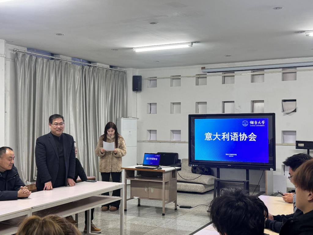 随后,意大利语外教马之帆和马志飞表达了对中国和烟台的喜爱之情。他们称在烟台的生活充满惊喜,当地风土人情让他们流连忘返。外教们特别感谢同学们在学习中文过程中给予的帮助,并表示将全力支持协会的各项活动,祝愿意大利语协会越办越好。