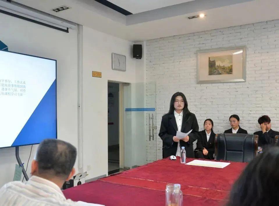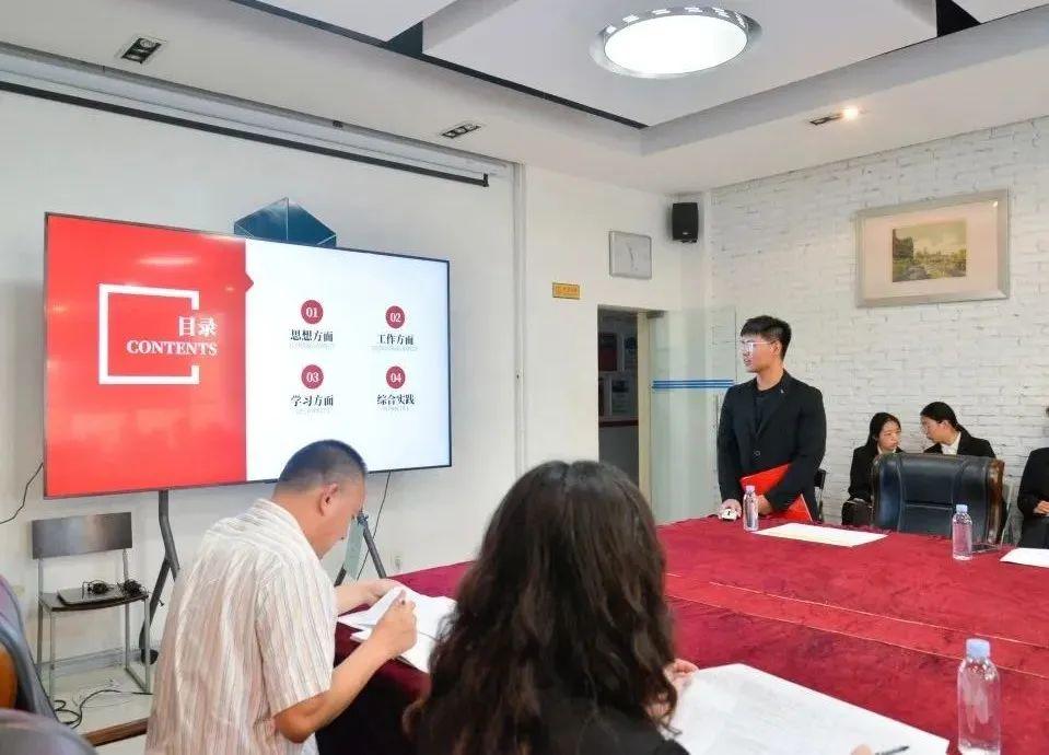经前期个人申报和学院初审,共有12名候选人入围答辩环节。学生代表张雨晴主持会议,参加答辩的各位同学按照抽签顺序进行自我展示及现场答辩。