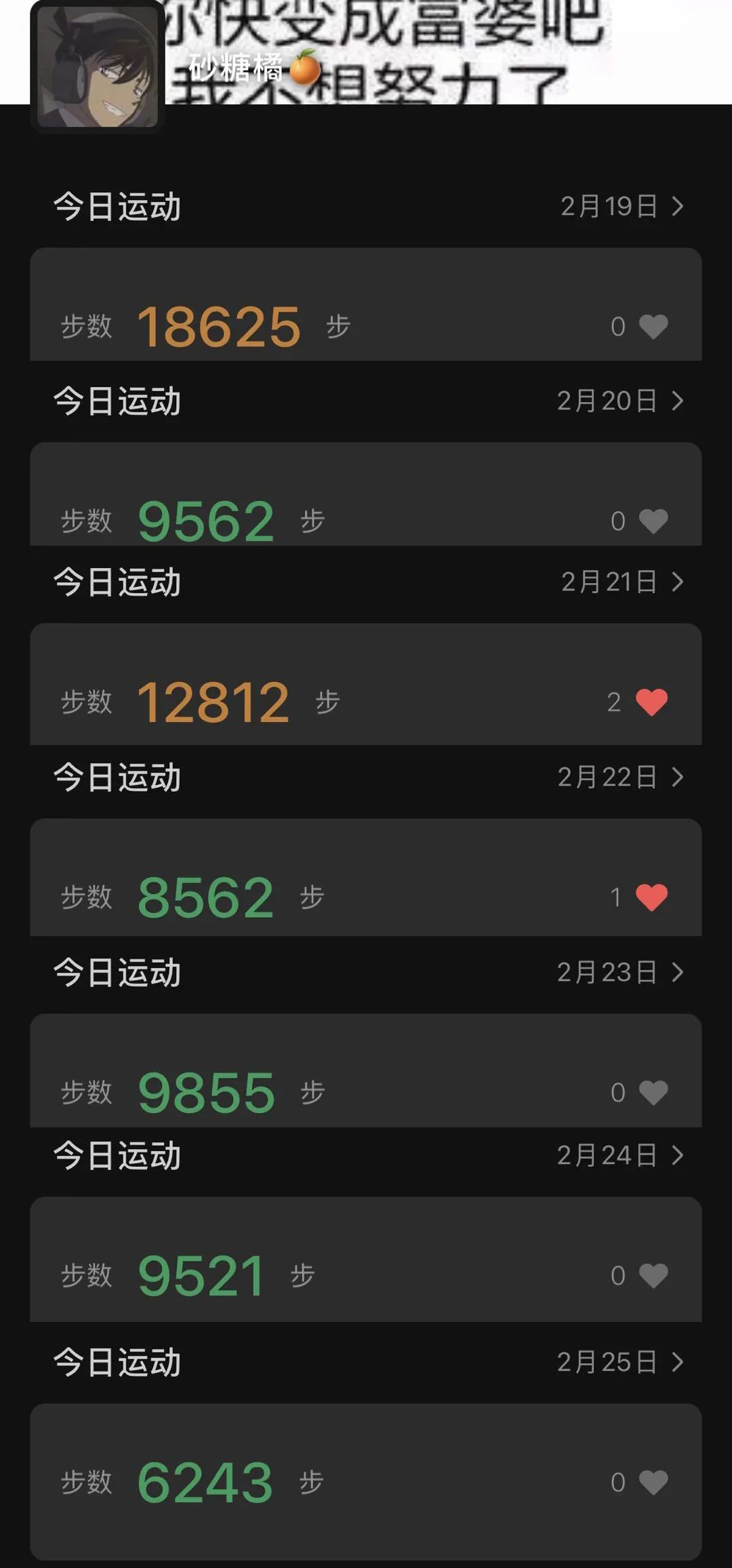 运动不应该是一种偶然,它更应该是一种习惯,日复一日地坚持,才有扭转乾坤的力量。根据中国营养协会的标准,一个正常成年人需要每天行走六千步才满足正常的锻炼需求,我们正是根据这一标准来进行评判。