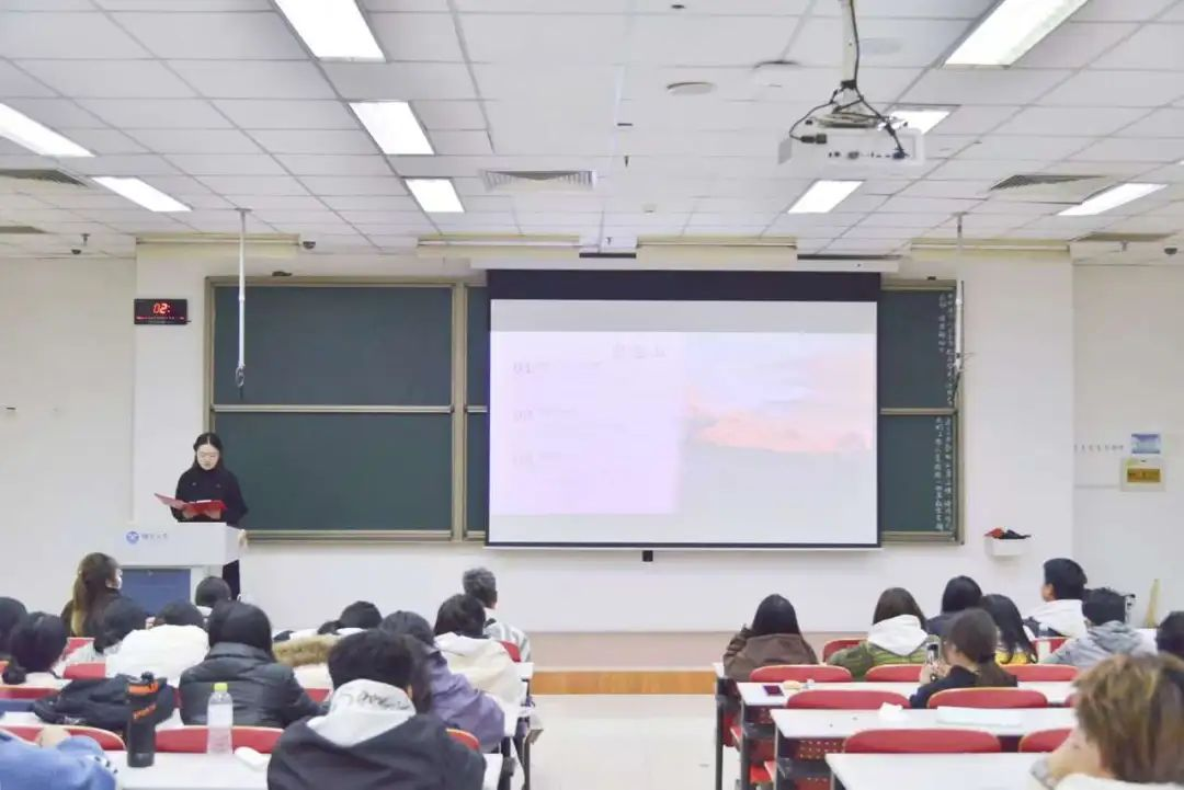 建223班薄文静分享了专业学习与参加竞赛的经验。建232-2班张书涵结合自身案例讲述了如何利用课余时间丰富大学生活,如何有选择性地参加社团活动等话题。
