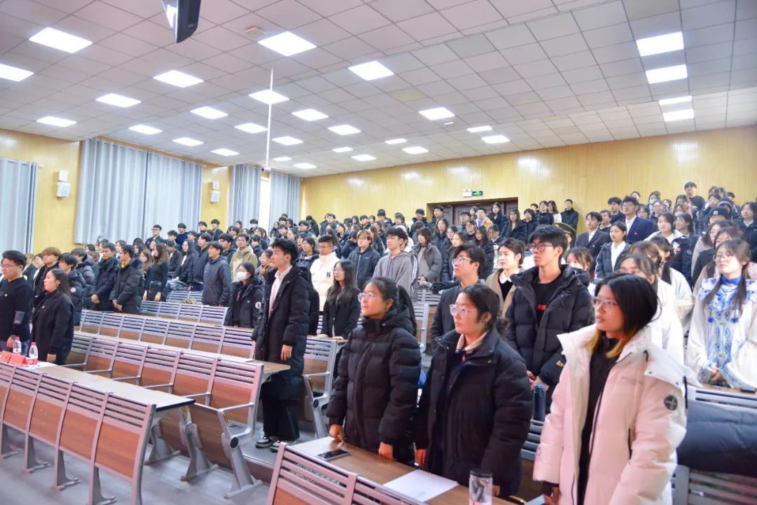 团委书记徐小惠在讲话中对新团员的加入表示热烈欢迎,同时也对全体团员提出了期望和要求:一要坚定信念,不忘初心,在践行初心使命中展现爱国情谊;二要勤奋学习,锤炼本领,在刻苦磨砺中练就过硬本领;三要勇于担当,甘于奉献,在攀登知识高峰中展现担当作为,不忘初心、砥砺前行,为实现中华民族的伟大复兴贡献青春力量。