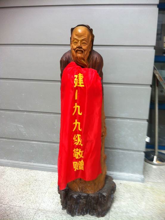 6、建99级校友毕业十年聚会,捐“孔子”木雕象。