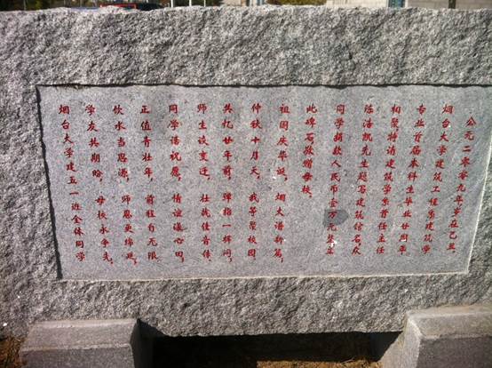 1、建85级1班(首届)校友毕业20年聚会,捐赠“建筑馆”刻石。