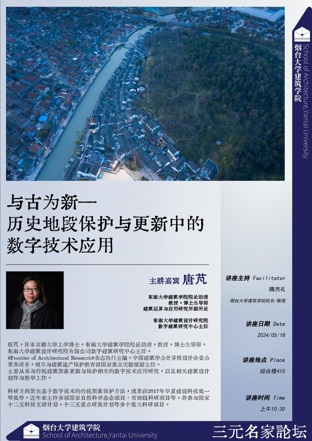 院长助理,教授,博士生导师。东南大学建筑设计研究院有限公司数字建筑研究中心主任。《Frontierof Architectural Research》杂志执行主编,中国建筑学会计算性设计分委会常务理事,城市与建筑遗产保护教育部国家重点实验室副主任。主要从事与传统建筑聚落更新与保护相关的数字技术应用研究,以及相关建筑设计创作与教学工作。成果获2017年华夏建设科技奖一等奖等。近年来主持多项国家自然科学基金项目、省部级科研项目等,并参与国家“十二五”科技支撑计划,“十三五”重点研发计划等多个重大科研项目。